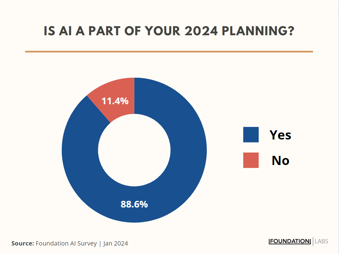 我們的調查還發現,絕大多數(88% )的領導者將人工智慧納入了 2024 年的規劃中。