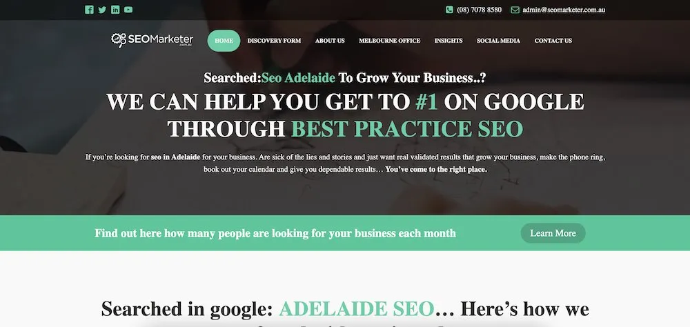 SEO Adelaide Pros 是一家位於阿德萊德的本地 SEO 公司。 他們喜歡與對自己的工作充滿熱情的當地企業合作。 他們表示,客戶滿意度和客戶服務是他們最關心的問題。