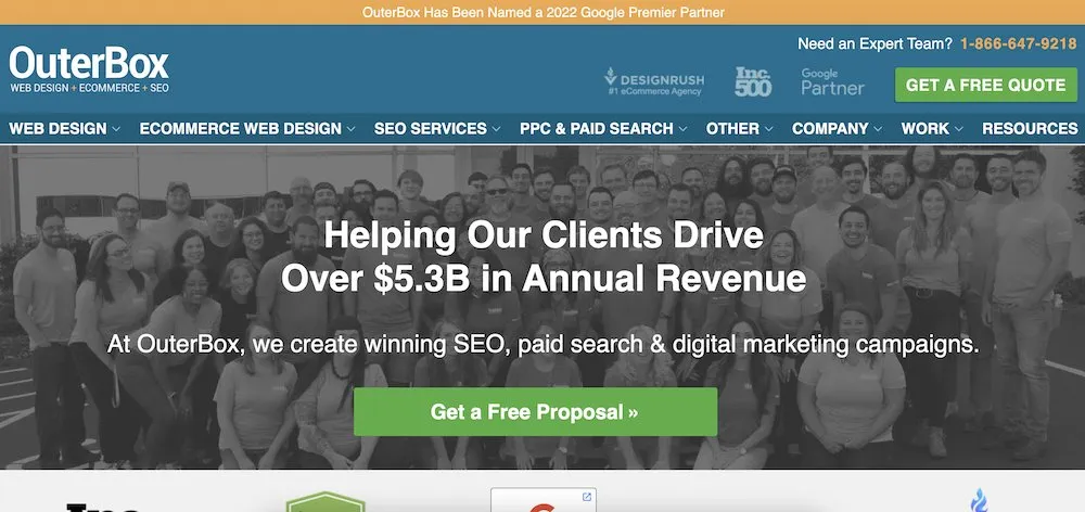 OuterBox 是一家以結果為導向的數字營銷機構,提供 SEO 諮詢服務。 該公司幫助其客戶群推動了超過 $5.3B 的年收入,這令人印象深刻! OuterBox 團隊在幫助組織在 Google 上實現有機增長方面擁有超過 17 年的經驗。 他們了解如何提高排名、登上榜首並推動轉化以增加收入。