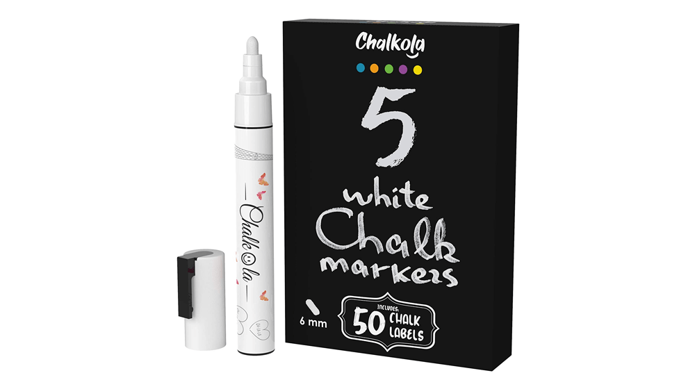 Chalkola 聲稱他們的白色幹擦記號筆幾乎適用於任何表面。 根據產品詳細信息,這些記號筆將擦除玻璃和鏡子等無孔表面(幹擦和濕擦),並永久用於多孔表面(如木材)。