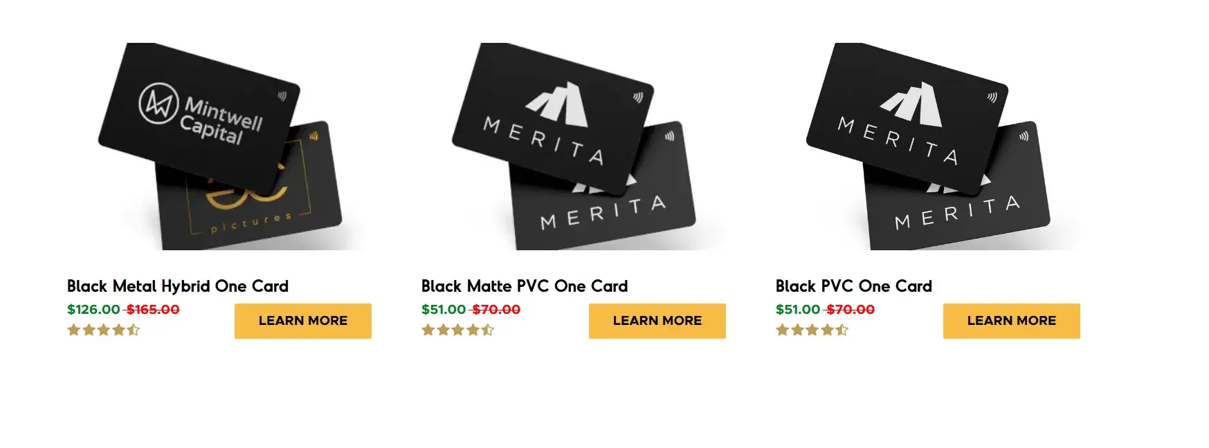 V1CE 提供由塑料、金屬和竹子製成的 NFC 卡。 因此,價格可能會有所不同,具體取決於您為數字名片選擇的材料類型。 黑色 PVC One 卡售價 70 美元(無折扣)。 Android NFC 保護殼的價格為 51 美元,而 iPhone NFC 保護殼的價格為 70 美元。