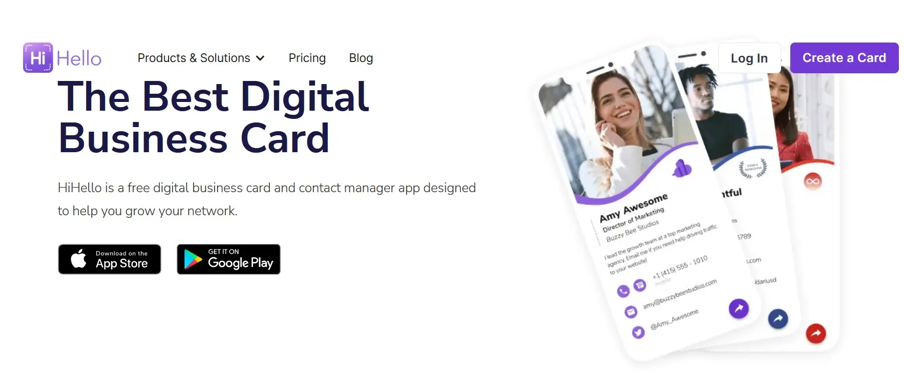 - HiHello 提供易於導航的儀表板來創建和更新數字名片。