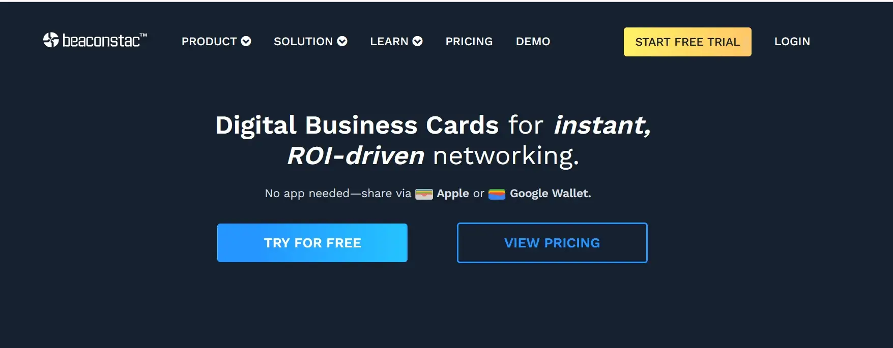 如果您正在尋找具有簡單二維碼功能的數字名片,Beaconstac 是您的最佳選擇。 最好的部分是您不需要應用程序來共享 Beaconstac 數字名片。 您可以通過 Apple 或 Google 錢包共享這些卡。