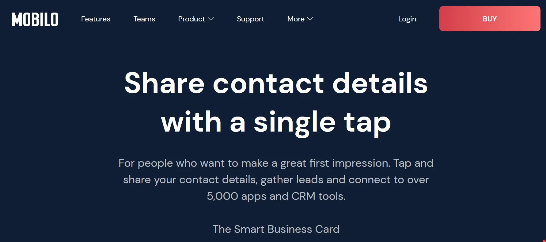 - 您的 Mobilo 數字名片具有四種強大的模式:名片、登陸頁面、潛在客戶開發和任何 URL 鏈接。