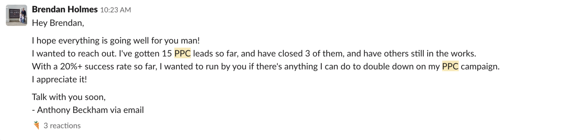 根據我們的數據,Carrot 潛在客戶的轉化率比非 Carrot 潛在客戶高 7 倍,利潤高 2.5 倍。