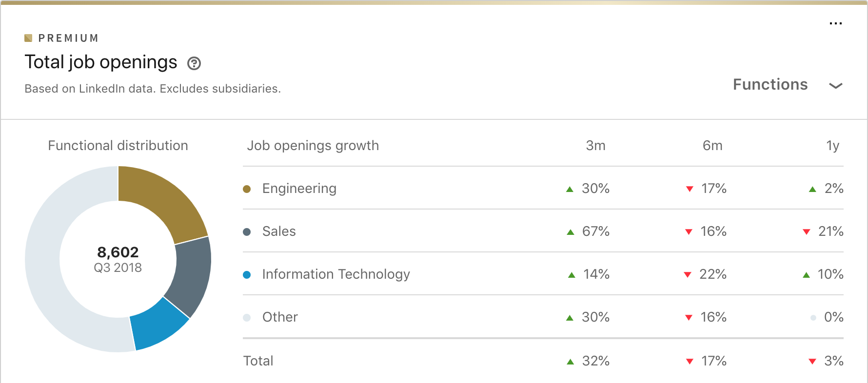 此部分與“按職能劃分的員工分佈和員工人數增長”部分非常相似,但側重於新職位的數量。