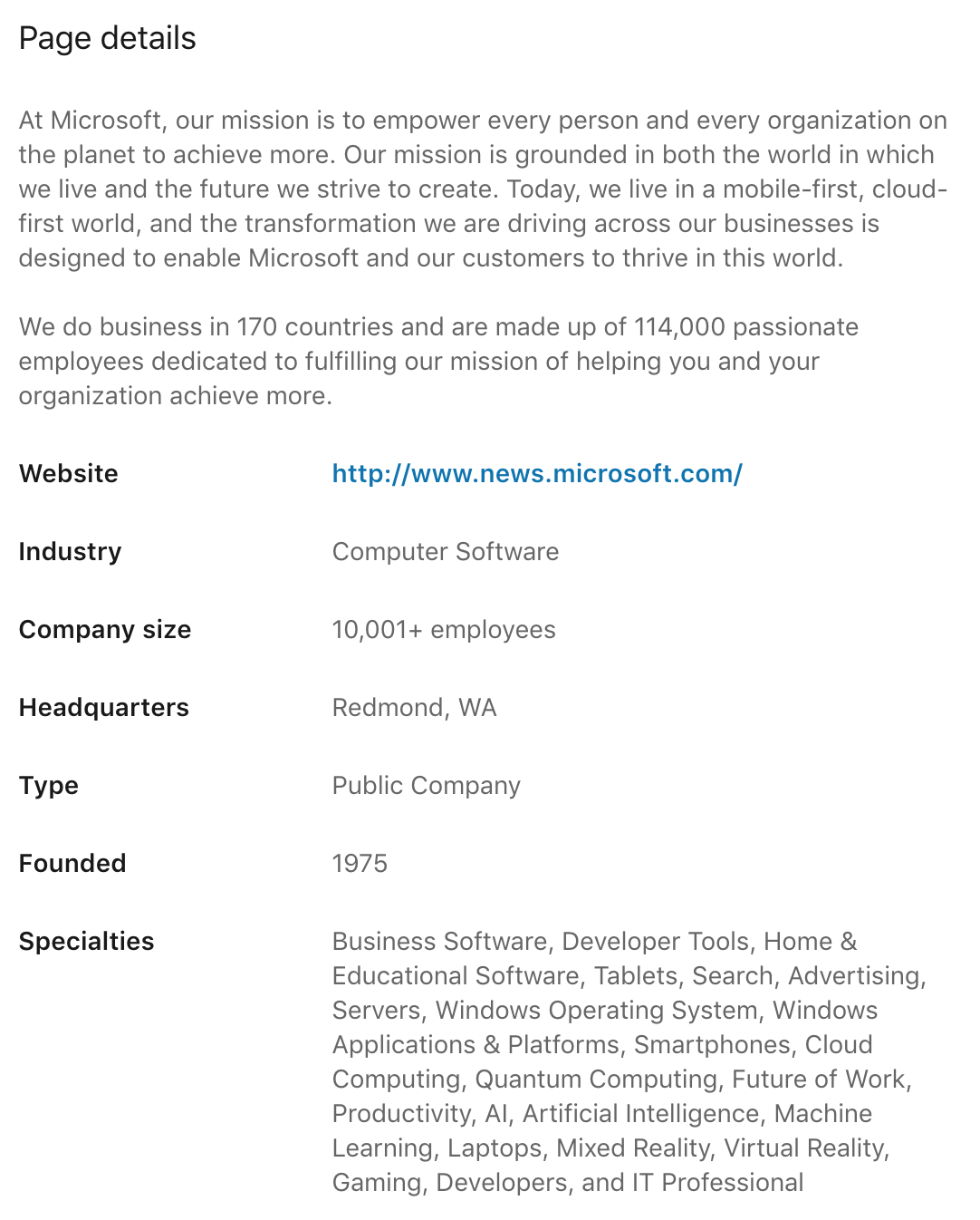 以下是 Microsoft about 部分的示例: