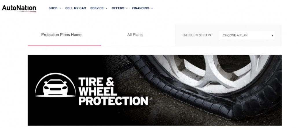 我並不是建議您應該在您的網站上複製這位汽車推銷員的宣傳,而是繼續搜索“輪胎保險”,您自己會發現大多數銷售輪胎保險的著陸頁都會使用類似的圖像來構建他們的報價。 以下只是來自 AutoNation.com 的一個示例。
