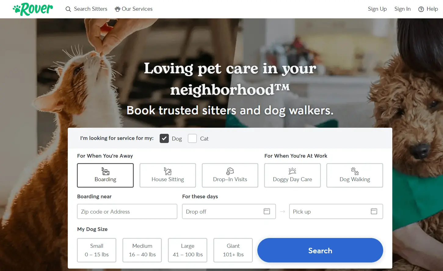 Rover 可以幫助您找到想要有人照顧他們的狗/貓的寵物主人。 您甚至可以為寵物提供寄宿設施。 但日托、散步和看家是常見的任務。