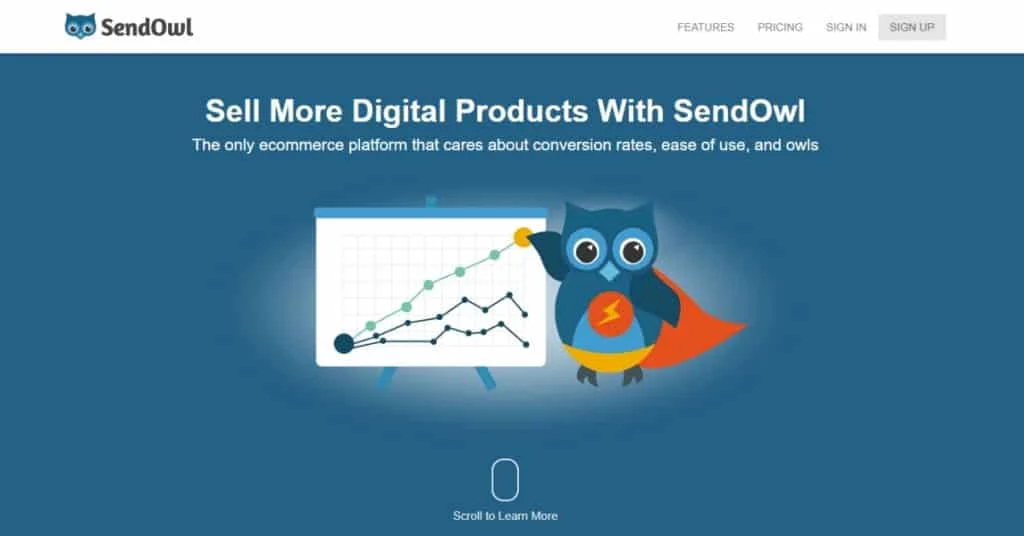 - Send Owl – 如果您已經創建了數位產品(或計劃創建),但您不知道在哪裡以及如何銷售它們,那麼您需要 Sendo Owl。 這是一個易於使用的平台,可以託管您的產品,幫助您銷售產品,並將產品交付給您的客戶。 當我第一次開始銷售我的報價時,我使用了這個工具。