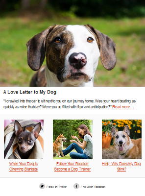 The Bark 的電子郵件通訊以生動的照片為特色,使消息從讀者的屏幕上彈出,以及指向信息內容的鏈接,使收件人想要訪問博客並了解更多信息。