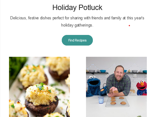 在假期期間,Yummy 會向讀者提供相關內容,包括一年中客戶最需要的時候的便餐食譜。 時事通訊的每個元素都有明確的品牌標識,因此讀者永遠不會忘記他們在哪裡看到的食譜。