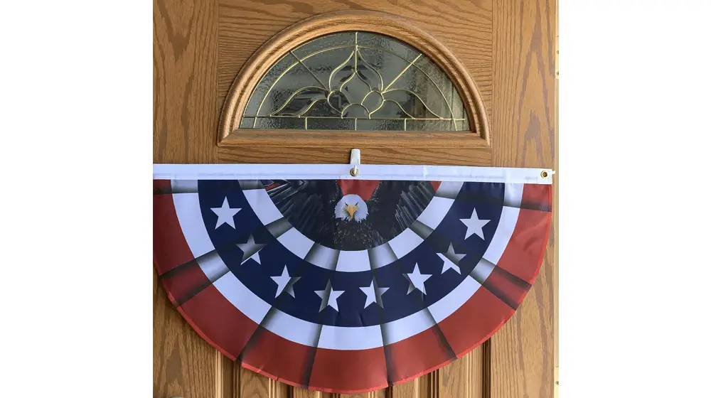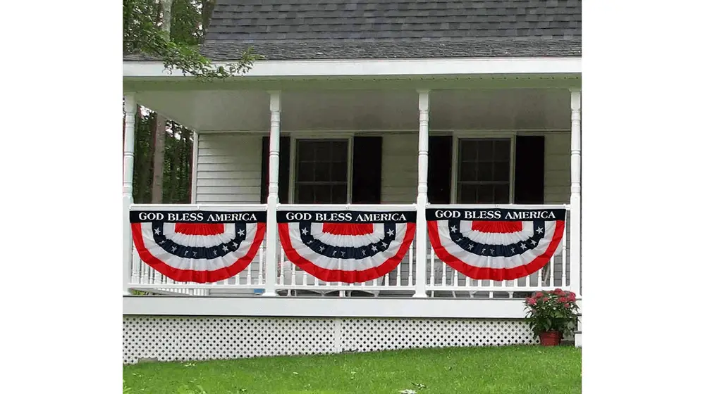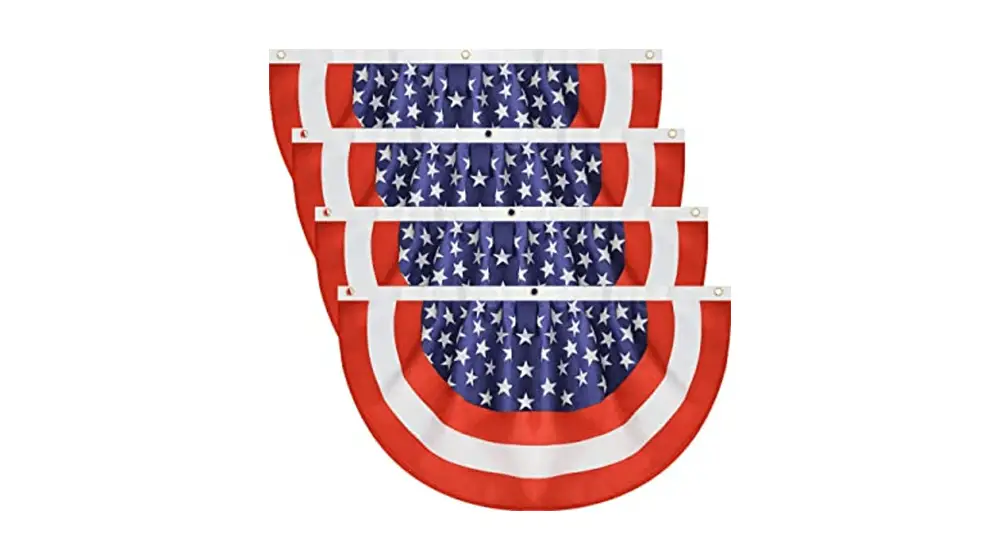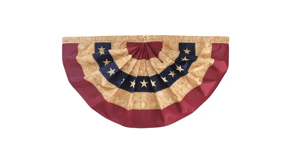 亞軍:這面 3' x 6' 褶皺扇形旗幟是手工製作的,頂部印有“God Bless America”字樣,中間條紋內襯縫有星星。 旗幟的設計展示了帶有星條旗的複古美式裝飾。