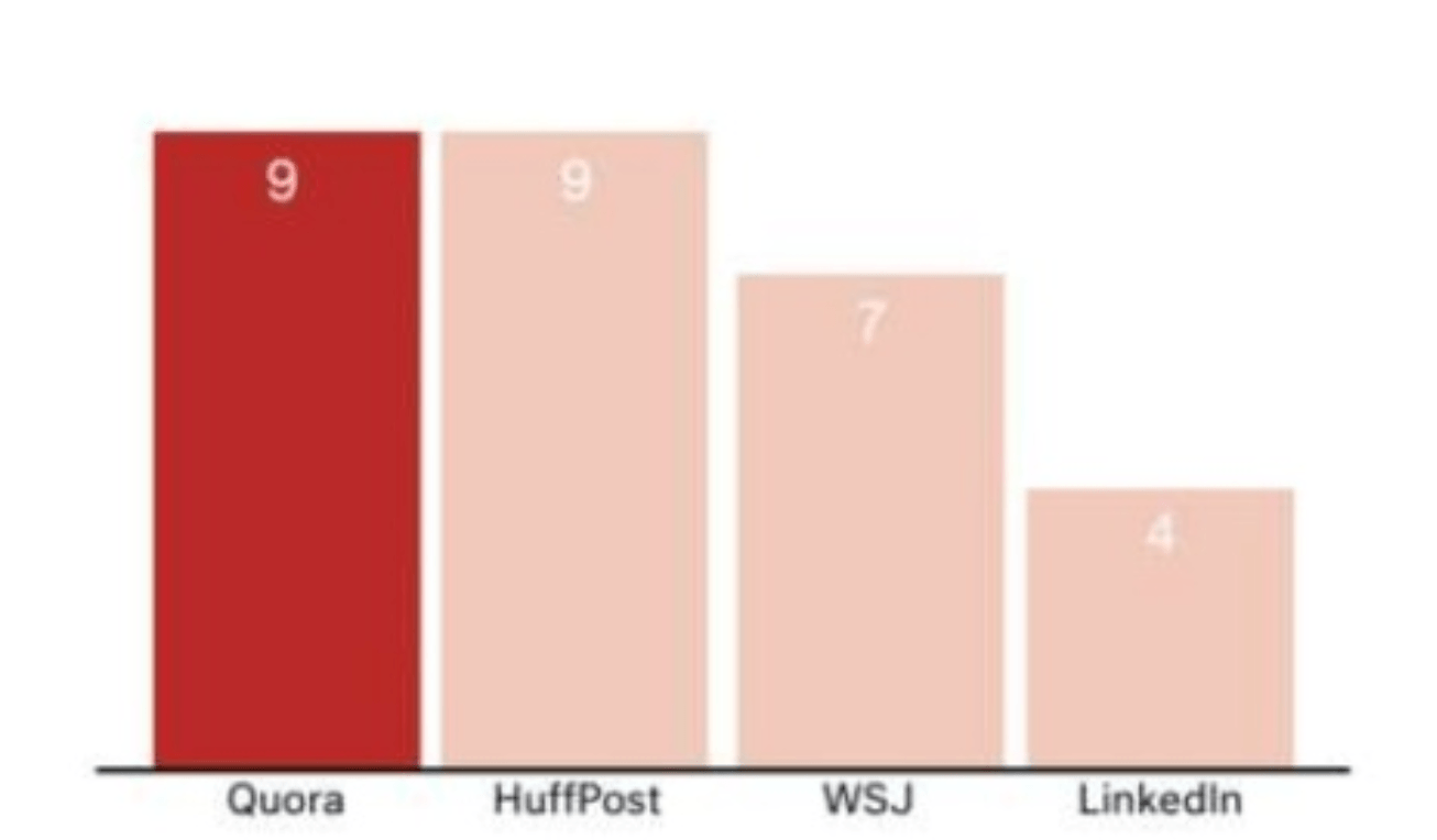 9. 成年人在 Quora 上花費的時間是 LinkedIn 的 2 倍