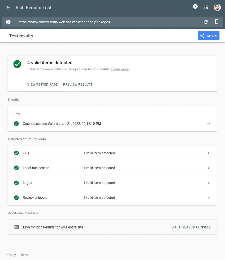 Google 富結果測試工具可幫助您測試可公開訪問的頁面,以了解其包含的結構化數據生成了哪些富結果。