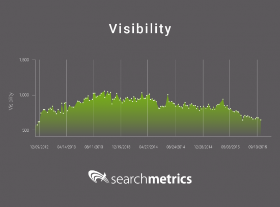 此外,我還找到了一些例子來嘗試賦予這個主題更多的意義。 早在 2014 年,下面的網站就從非標籤結構變為標籤結構內容。 從 SEO 可見性來看,我們幾乎立即看到了下降。