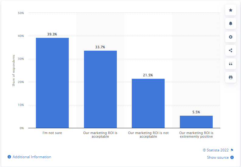 事實上,在沒有明確誰是理想客戶的情況下深入營銷將是讓你的全部預算付諸東流而沒有取得任何結果的最佳方式之一。 不幸的是,研究表明,多達 39% 的小企業主不確定他們的營銷工作的投資回報率: