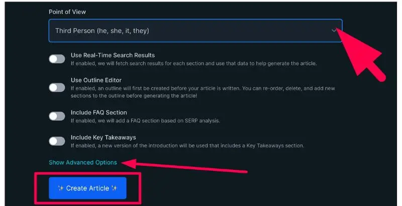 選擇文章長度將有助於管理人工智慧將產生的文章數量。 但是,當您將其保留為預設值時,它可能會產生太多不需要的文章,這很容易減少您的單位。