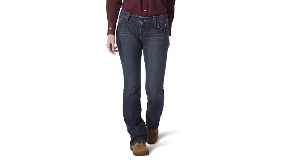 Wrangler Riggs 工裝女式微喇牛仔褲專為需要功能性和風格的工作裝的女性而設計。 這款牛仔褲採用中腰常規版型,靴筒剪裁,可容納您最喜歡的工作靴。 它們具有阻燃性,可自行熄滅,有助於防止或減少燒傷。
